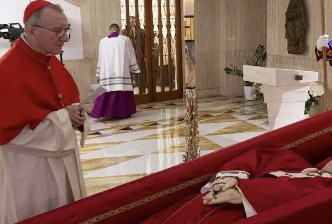 Η σορός του εκλιπόντα ποντίφικα μεταφέρθηκε αργά χθες βράδυ στο παρεκκλήσι του ξενώνα της Αγίας Μάρθας, όπου διέμενε. Το γραφείο και το διαμέρισμά του σφραγίστηκαν.