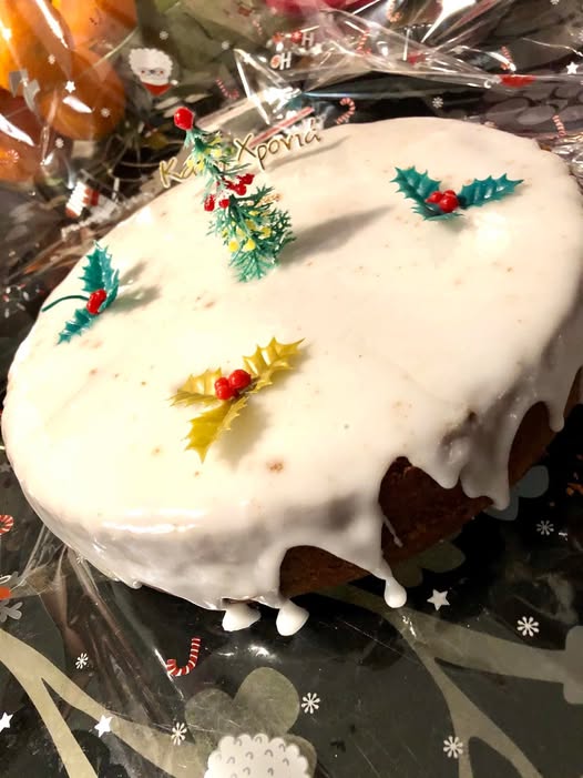Το αδειάζω στην μέση της Βασιλόπιτας και με μία σπατουλίτσα το απλώνω σε όλη την επιφάνεια …βάζω κ τα διακοσμητικά και έτοιμη !!!Νομίζω είναι το πιο απλό εύκολο ωραίο γλάσο !