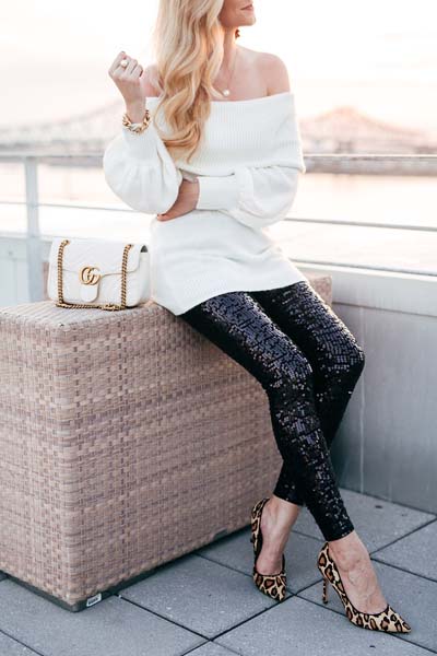 Σε περίπτωση που επιλέξετε ένα βραδινό ντύσιμο με κολάν ή παντελόνι από παγιέτες θα πρέπει να διατηρήσετε μια ισορροπία στο σύνολο σας. Γι’ αυτό φορέστε το με κάτι απλό και μονόχρωμο από πάνω. Αυτό μπορεί να είναι μια βραδινή αέρινη μπλούζα, ένα πουλόβερ είτε ένα λευκό πουκάμισο που είναι και μια all time classic επιλογή.