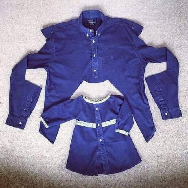 Δυο πουκάμισα διαφορετικού χρώματος μπορούν να φτιάξουν ένα υπέροχο παιδικό φόρεμα.