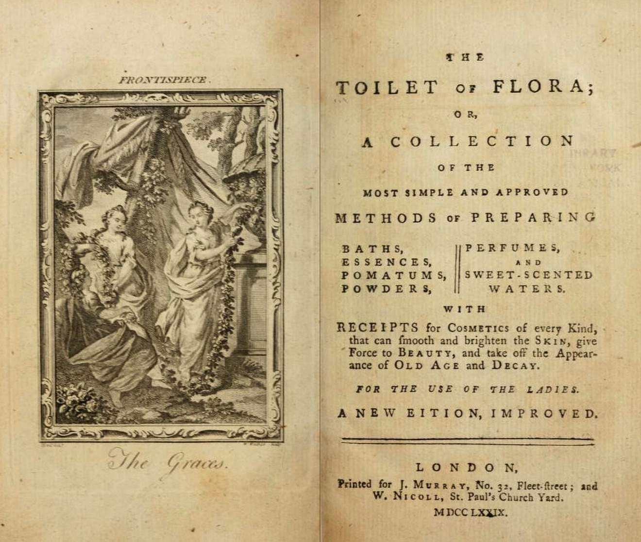 Το βιβλίο “Toilet of Flora” δημοσιεύτηκε το 1779. Περιείχε συνταγές για την μείωση των ρυτίδων, καθαρό δέρμα και απαλά μαλλιά.