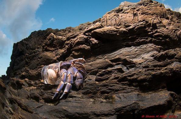 Ο Shawn Miller έκανε μια βόλτα στην παραλία της Okinawa, στην Ιαπωνία, όταν είδε ένα καβουράκι να προχωράει και να έχει αντί για το αναμενόμενο καβούκι…ένα καπάκι από πλαστικό μπουκάλι!