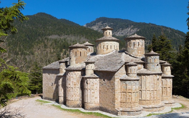 Εκεί, περίπου ενάμισι χιλιόμετρο μακριά από τα Δολιανά, μέσα στο πανέμορφο ελατόδασος του Ασπροποτάμου, ένας από τους πιο αξιόλογους βυζαντινούς ναούς προσελκύει το ενδιαφέρον και τον θαυμασμό όσων έχουν την τύχη να τον επισκεφθούν.