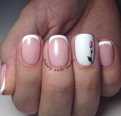 Μια όμορφη ιδέα για να απογειώσετε το απλό γαλλικό στα νύχια σας είναι τα μικροσκοπικά λουλούδια τόσο κατά μήκος της γραμμής, όσο και σε ένα από τα δάχτυλα. Αντίστοιχα εντυπωσιακό είναι και το french manicure με γραμμή από glitter.